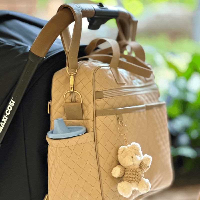 Com design inteligente e fechamento em velcro, ela se ajusta facilmente ao guidão do carrinho, permitindo pendurar a bolsa com equilíbrio e estilo, mantendo tudo à mão, sem abrir mão do conforto e da estética.
