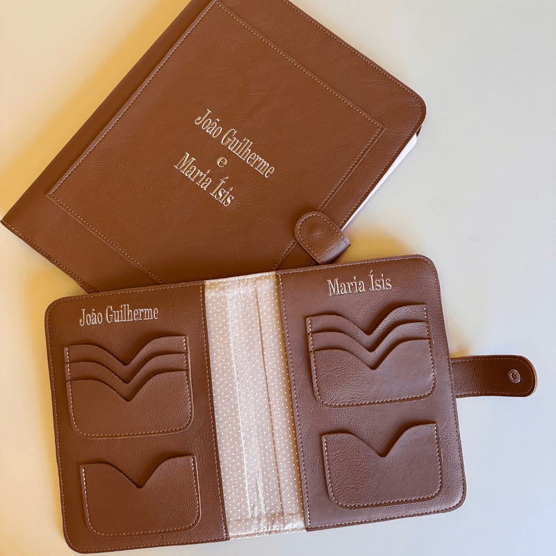 Ele é ideal para as mamães que precisam organizar os documentos do bebê em um só lugar além de deixá-los protegidos e de fácil acesso. A pasta contém um tema e o nome do bebê é bordado em linha o que traz toda sofisticação e durabilidade na personalização;