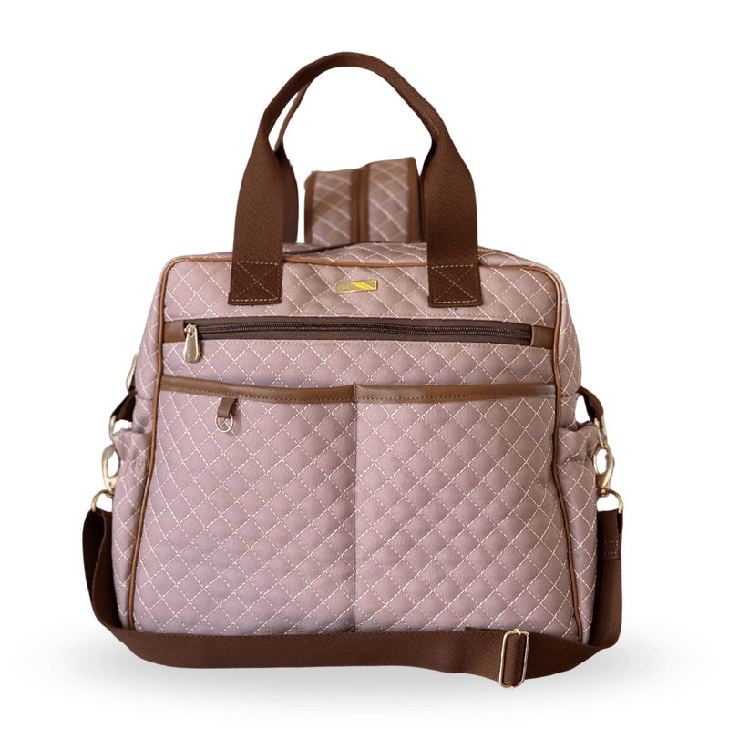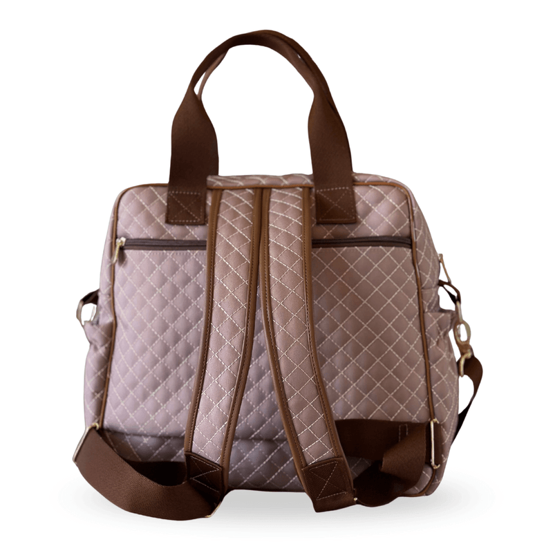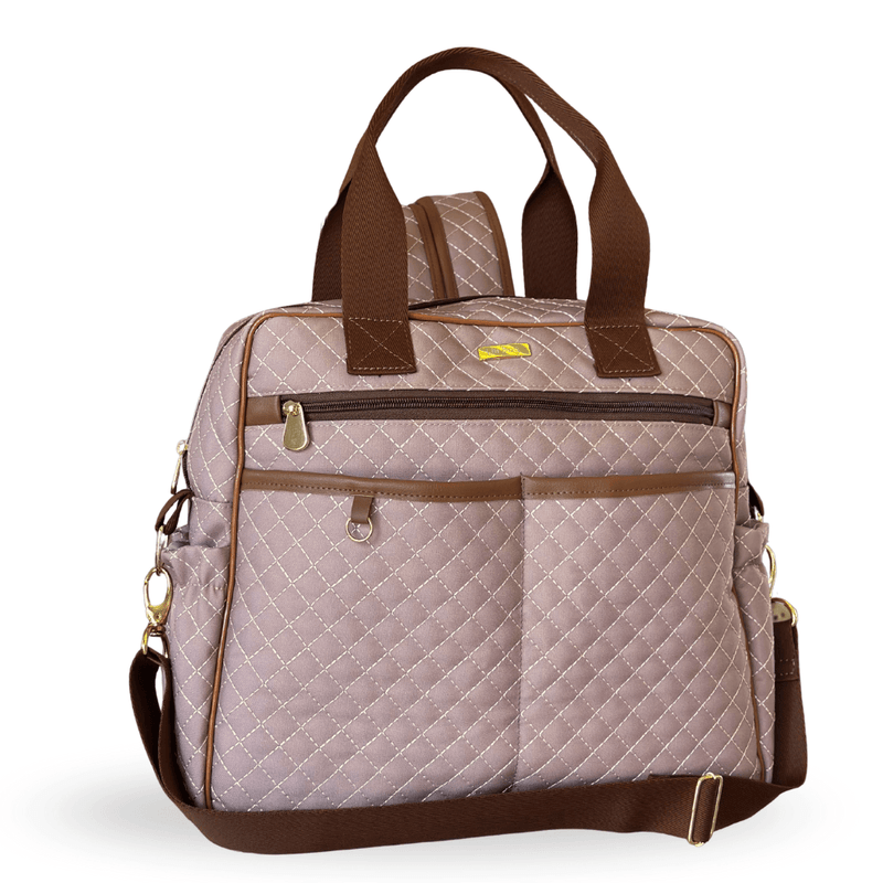 Esta mochila pode ser carregada de diversas formas: na mão com a alça curta, no ombro com a alça transversal ou como mochila com as alças nas costas, permitindo que você tenha as mãos livres para cuidar do seu pequeno. Além disso, ela pode ser pendurada no carrinho do bebê.