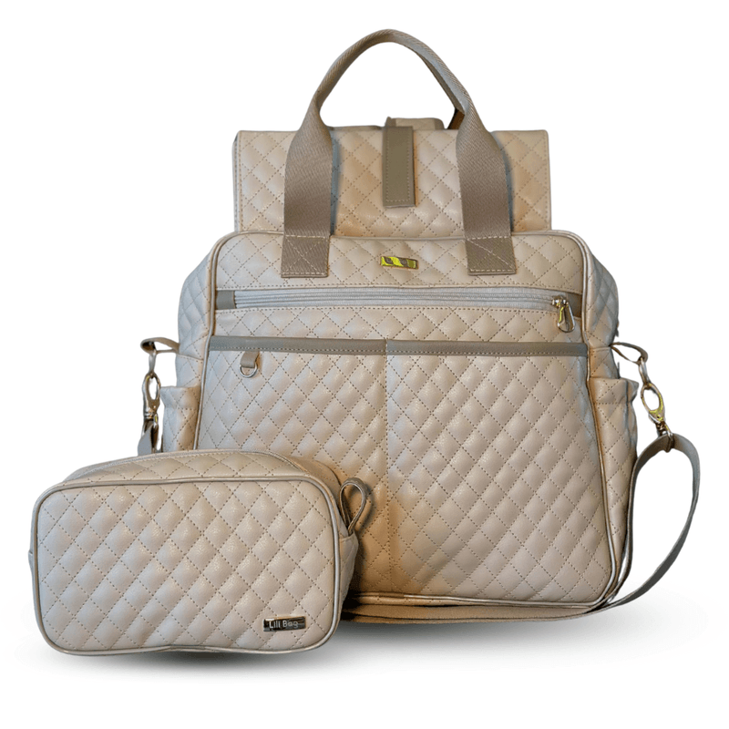 Mochila Maternidade Multifuncional Matelassê Bege