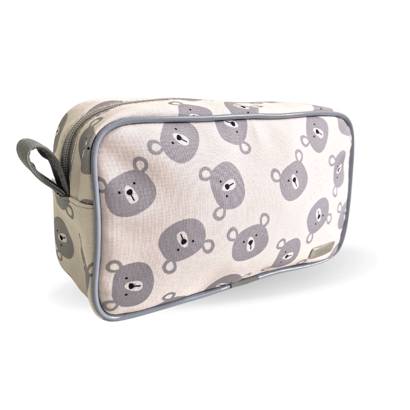 A Necessaire para bebê é feita com material de tecido 100% poliéster e dublagem 100% algodão. O material é lavável e traz facilidade para a limpeza quando for necessário. Internamente é forrado com tecido nylon impermeável.