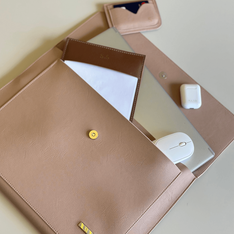 Pasta Envelope ideal para carregar o computador portátil, tablet e documentos. O material é feito em couro ecológico super grosso, muito assemelhante ao couro legítimo. Pode ser colocado as iniciais do nome para deixar a peça ainda mais especial.