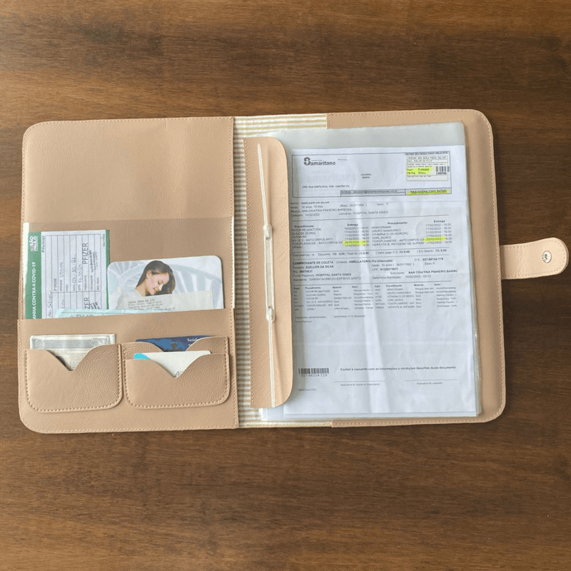 Com dimensões compatíveis com exames tamanho A4, esta pastinha pode acomodar todos os exames de ultrassons, receitas médicas, cartão do plano de saúde, plano de parto e documentos importantes como a CNH.