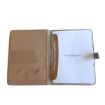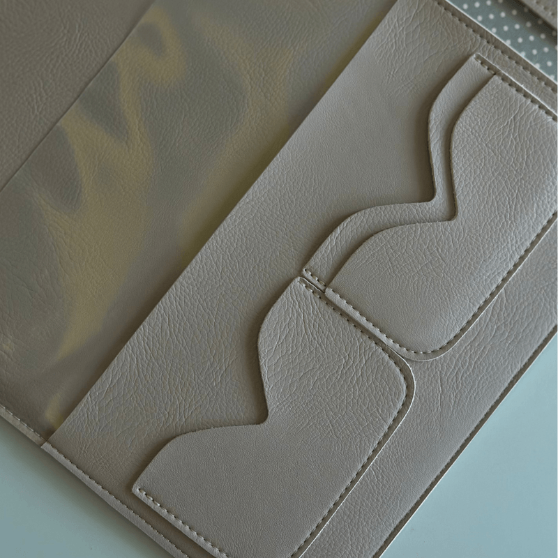 A pastinha completa, perfeita para exames e documentos da gestante. Essencial para quem deseja viver a gestação com mais leveza e praticidade, a Pasta Gestante foi criada para manter todos os documentos e exames organizados em um só lugar, desde o primeiro ultrassom até o plano de parto. Produzida em couro ecológico grosso, alia elegância, resistência e consciência, respeitando a preocupação com a origem animal.